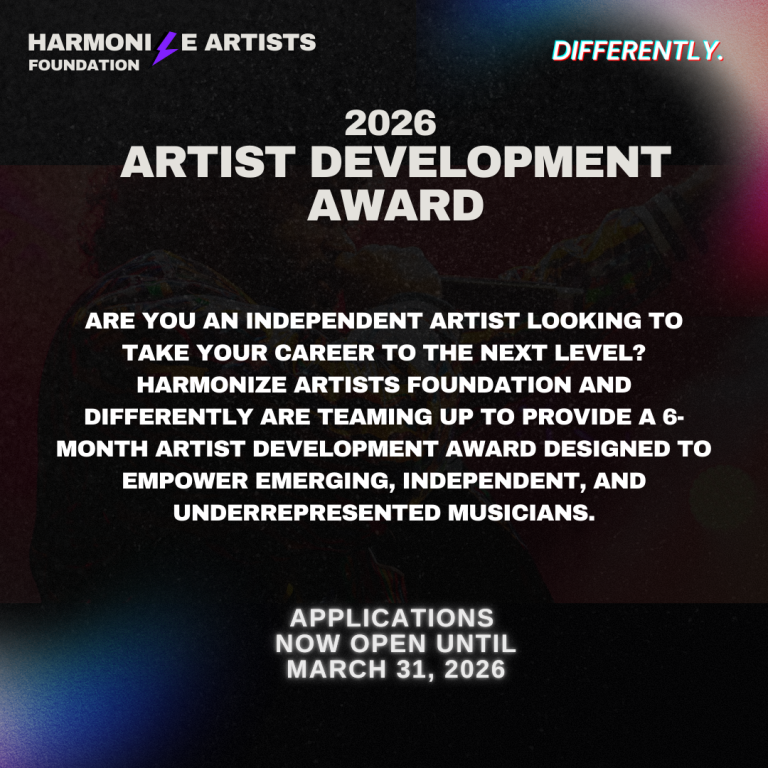 Harmonize Artists Foundation has partnered with DIFFERENTLY, a media agency specializing in artist development and management, to offer an exclusive opportunity for one Nashville‑based artist or band.